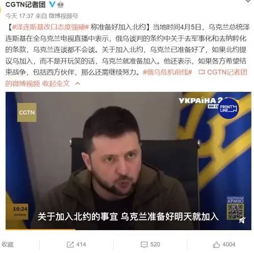 泽连斯基改口态度强硬,称准备好加入北约